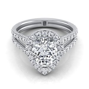 An Elegant Statement Of Style, This Pear Shape Halo Pave Engagement Ring Showcases Brilliant Cut Diamonds (h-i/vs 0.85ctw) With An Exquisite Pave Split Shank Mounted In A Platinum Setting.