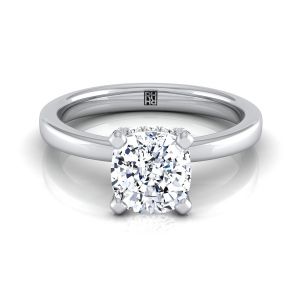 Platinum Cushion Diamond Adorned Claws and Secret Halo Solitaire Engagement Ring -1/10ctw with a 0.63ct H, VS2 Cushion Diamond
