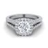 Platinum Cushion Diamond Halo Center with French Pave Split Shank Engagement Ring -3/8ctw with a 1.01ct H, VS1 Cushion Diamond