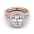 14K Rose Gold Oval Diamond Halo Two Row Pavé Split Shank Engagement Ring -7/8ctw with a 1.01ct H, VS2 Oval Diamond