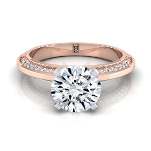 14K Rose Gold Round Brilliant Diamond Knife Edge Micropave Engagement Ring -1/5ctw with a 0.50ct I, VS1 Round Diamond