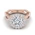 14K Rose Gold Round Brilliant Diamond Ribbon Twist French Pave Halo Engagement Ring -3/4ctw with a 0.90ct I, VS2 Round Diamond