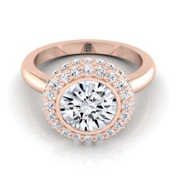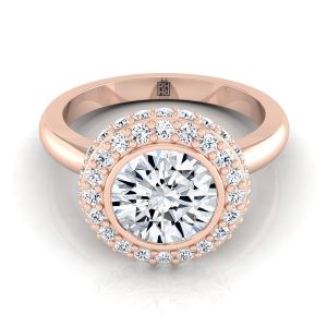 14K Rose Gold Round Brilliant Bezel Pave 3D Halo Solitaire Engagement Ring