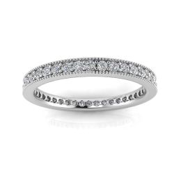 Round Brilliant Cut Diamond Pave & Milgrain Set Eternity Ring In 14k White Gold (0.72ct. Tw.) Ring Size 7.5