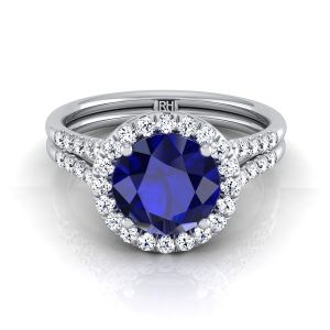 An Elegant Statement Of Style, This Sapphire Round Center And Diamond Halo Engagement Ring With Double Row Shank Showcases Brilliant Cut Diamonds (h-i/vs 0.40ctw) Beautifully Set In A Classic 14k White Gold Setting.
